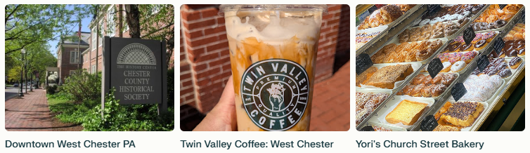 Stroll the brick sidewalks of Downtown West Chester where vibrant storefronts and public squares pulse with holiday energy. Start your morning at Twin Valley Coffee for a signature pour-over and locally inspired pastry, then pop into Yori’s Church Street Bakery to grab a flaky turnover before wandering nearby galleries and boutique shops.
